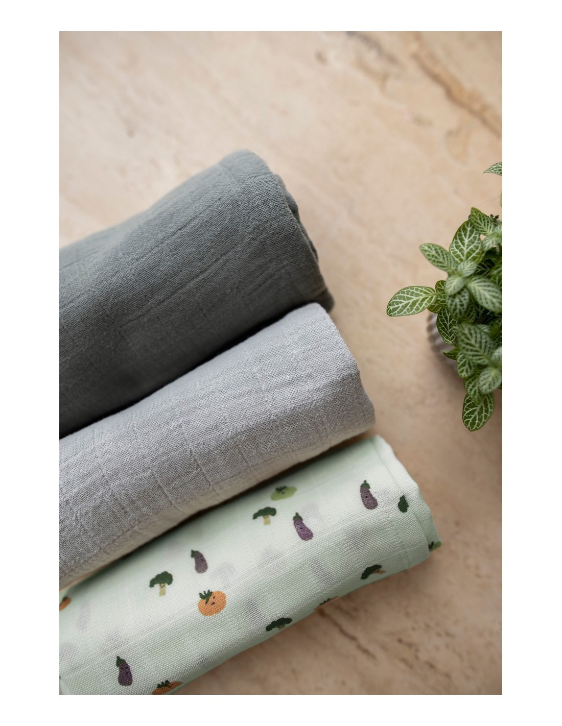 Muslin cloths 3-pack mix 55x55cm - Friendly Vegetables